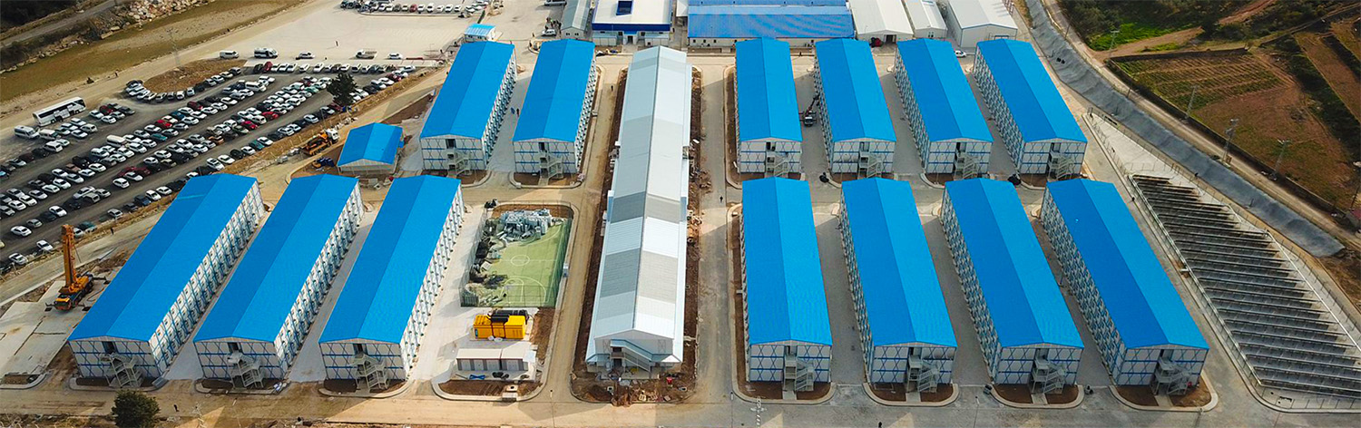 Sosyal Tesis ve Ofis yönetim binalarının yapımında tamamen hafif çelik konstrüksiyon sistem kullanılarak montajı yapılan 3 binanın toplam alanı 1400 m² olarak projelendirilmiştir.